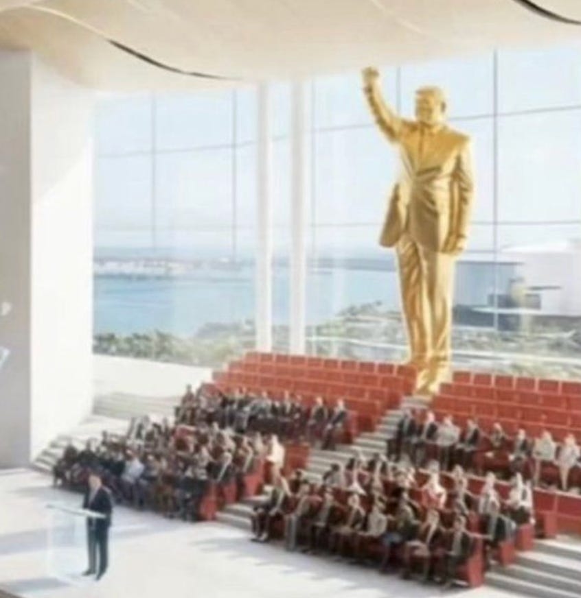 Speaking of Trump, his new Miami library will feature a 50-foot golden statue of Trump…I’m not kidding! Here is the rendition: