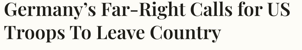 In Germany, the “far-right” AfD co-leader, Tino Chrupalla, told a party gathering in east Germany on Saturday that the country should chase an "independent" foreign policy, starting with the removal of American soldiers.